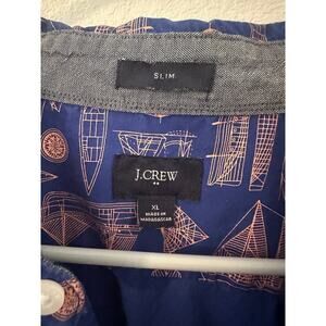 Sail into style with this J.Crew men’s short sleeve button-down shirt, size XL Slim Fit, featuring a playful sailing boat print. Made from 100% cotton, this lightweight, breathable shirt offers both comfort and coastal-inspired charm.