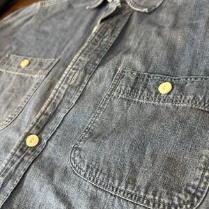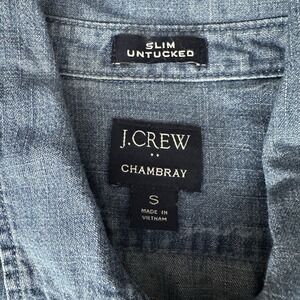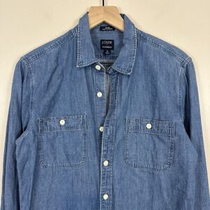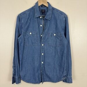 J Crew Shirt Mens Small Blue Slim Fit Untucked Chambray Utility Pockets Cotton