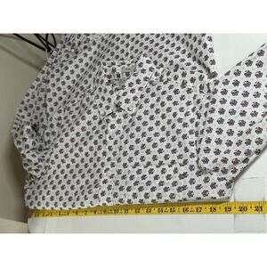 J Crew Shirt Mens Small Slim Fit White Purple Floral Stretch Organic Cotton Casual Preppy Button Up Long Sleeves Secret Wash Shirting Style AT985