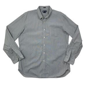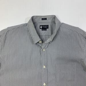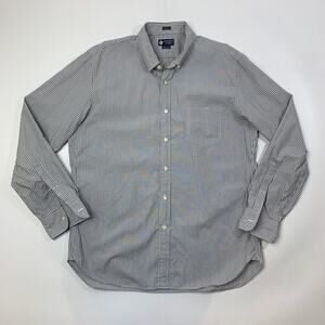 J Crew Shirt Mens XL Gray White Cotton 80s 2Ply Haberdashery Striped Button Down