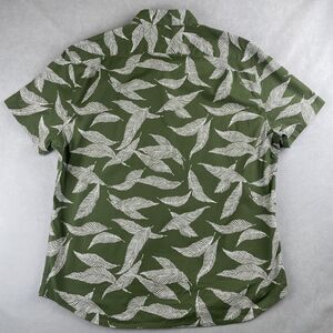 J Crew Shirt Mens XL Green Leaf Print Flex Washed Slim Short Sleeve Button Down