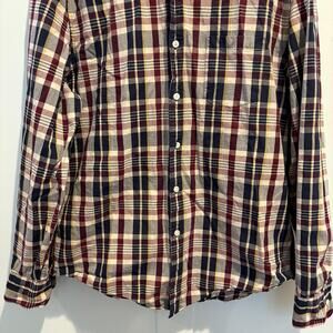 J Crew Shirt Mens XL Burgundy Navy Plaid Flex Washed Classic Button Down Casual