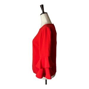 J Crew Shirt Women 00 Petite Red Crepe Lana Tiered Bell Sleeve Blouse NWT Preppy