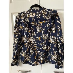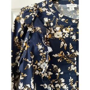 J Crew Shirt Women Medium Navy Gold Ruffle Trim Shoulder Chest Cotton Shirt