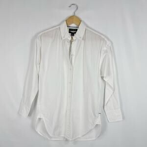 J Crew Shirt Womens 00 White Relaxed Fit Washed Cotton Poplin Long Sleeve