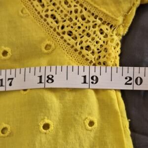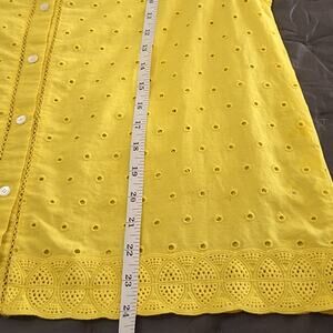 J. Crew Shirt Women's 8 Yellow 100% Cotton Mandarin Collar Eyelets Lace Trim