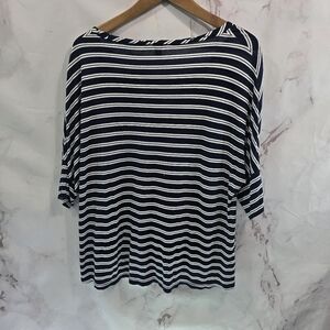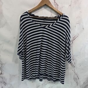 J Crew Shirt Womens Small Blue White Double Stripe Navy Slouchy Oversized