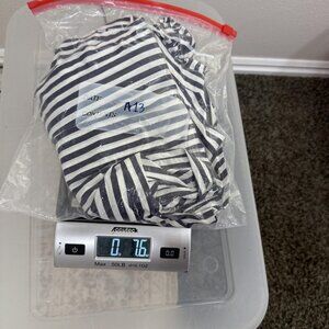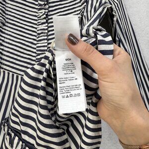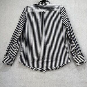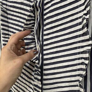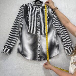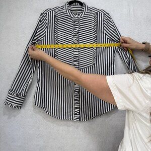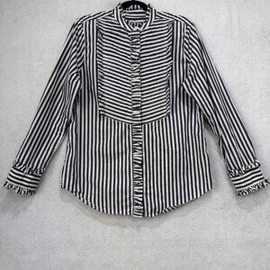 J Crew Shirt Womens Small Navy White Stripe Ruffle Trim Band Collar Long Sleeve