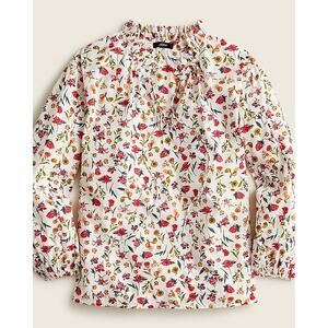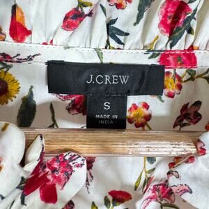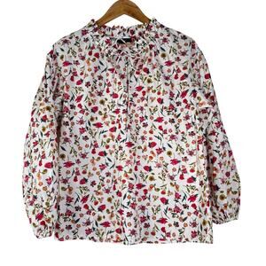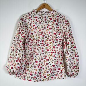 J. Crew Shirt Womens Small White Colorful Vintage Floral Ruffle Neck Cottagecore