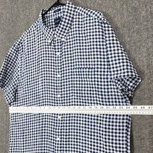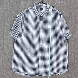 J Crew Shirt XXL Blue White Gingham Linen Blend Slim Button Down Short Sleeve.