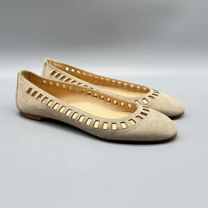 J Crew Shoes Womens 6 Beige Suede Ballet Cut Out Chic Flats Comfort Italy