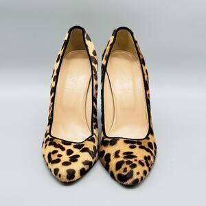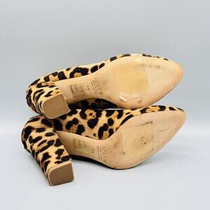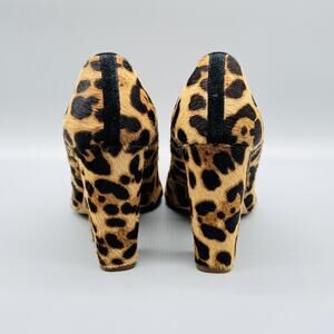 J Crew Shoes Womens 6.5 Brown Black Calf Hair Pump Leopard Print Chunky Heel