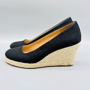 J Crew Shoes Womens Size 7 Black Espadrille Wedge Slip On Canvas Platform Summer