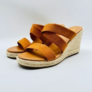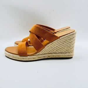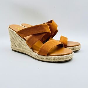 J Crew Shoes Womens 9 Brown Espadrille Wedge Heels Platform Sandals Slides NEW