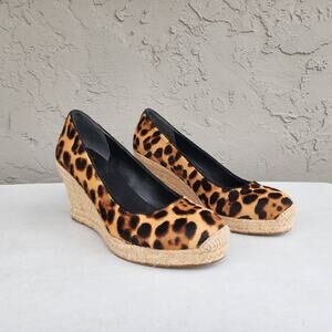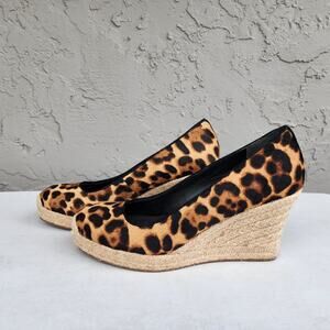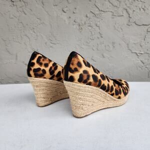 J Crew Shoes Womens Size 6 Espadrille Wedges Heels Leopard Calf Hair Leather
