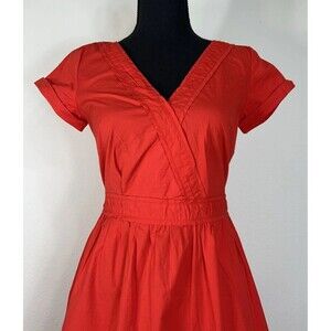 J. Crew Short Sleeve Cotton Poplin Red Orange Midi Dress Size 00