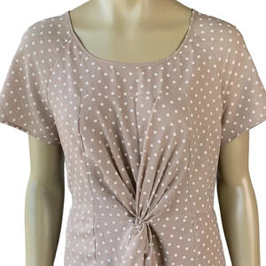 J. Crew Short Sleeve Polka Dot Knot Waist Chiffon Sheath Dress Size 14 Brown Tan