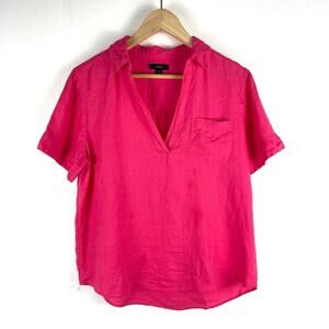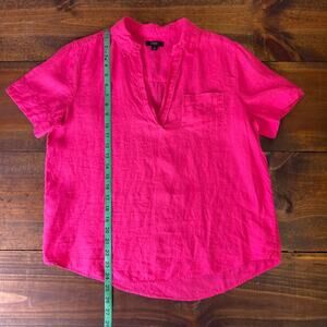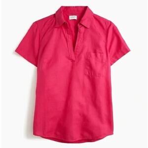 J. Crew Short Sleeve Popover 100% linen Dark Pink Chest Pocket Women's Small