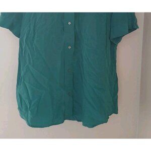 J. Crew Button Up Short Sleeve Shirt. Size medium. Teal green. Quiet Luxury, timeless, workwear. In nice, preowned condition. No flaws noted. Measures approximately 19" pit to pit, 26" shoulder to hem.