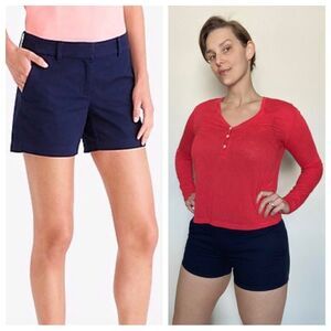 J. Crew Factory “Broken In” Chino shorts. Classic navy blue. Size 6. Material: 100% cotton. Please see photo section for approximate flat measurements + my model stats.