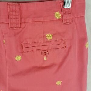 J. Crew City Fit Classic twill pink shorts with yellow pineapple embordered all over. 5 pocket with belt loops and zip closure.