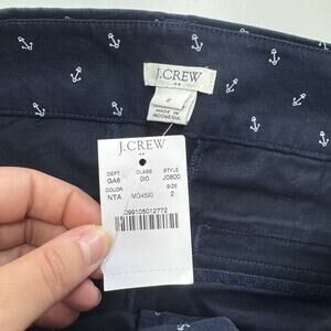 J Crew Shorts Womens 2 Blue Anchor Print Bermuda Stretch Summer Casual Nautical