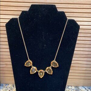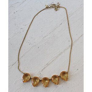 J Crew - Signed Costume Jewelry - Teardrop Topaz Statement Necklace with 5 Stones, Gold Tone with Lobster Clasp.