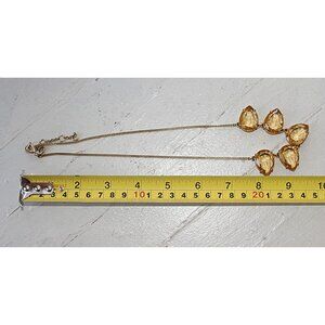 Features - 5 Teardrop-Shaped Faceted Topaz Colored Glass Beads in front, with a Gold Tone Tarnish-Resistant Chain and Lobster Clasp.