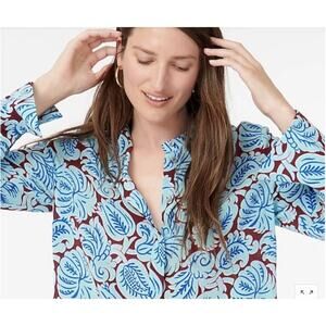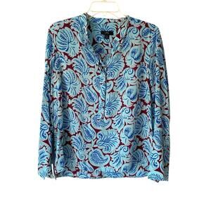 J. Crew Silk Aqua Blue Paisley Tunic Blouse size medium