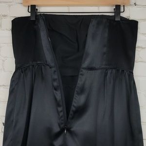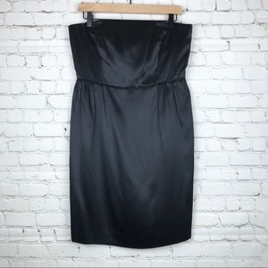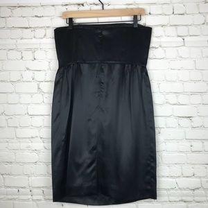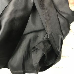 The perfect little black dress! Boning in bust to help give a structured look. 100% Silk. Back zipper. Lined. Fish tail opening in back.