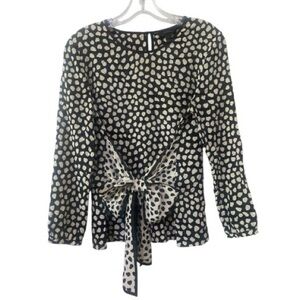 J. Crew Silk Black and Cream Pebble Print Polka Dot Blouse