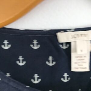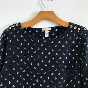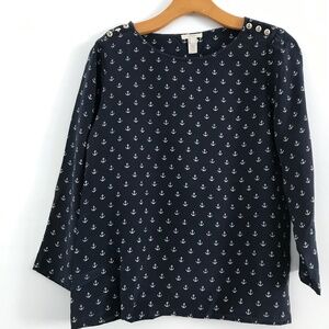 J Crew Silk Blouse Anchor Nautical Navy Blue Womens 6