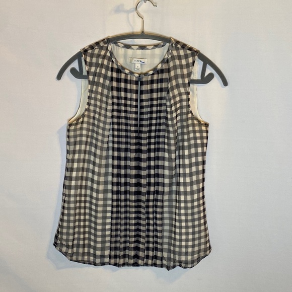 J. Crew Silk Blouse Sleeveless Black and cream check Size 0 Pleated XS