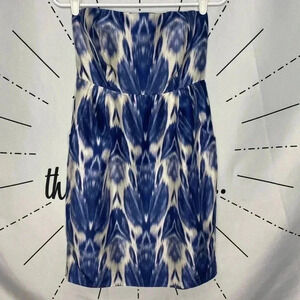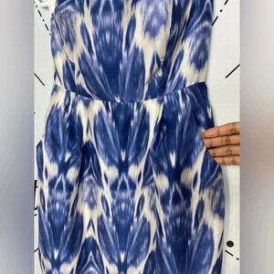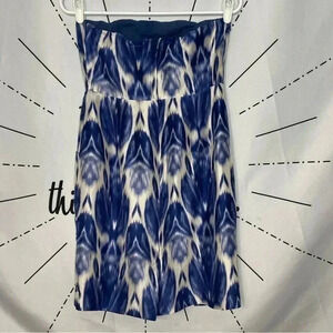 J. Crew Silk Blue & White Ikat Strapless Dress