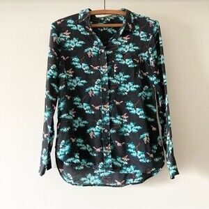 J. Crew Silk Botanical Bee Button Front Blouse Size 2