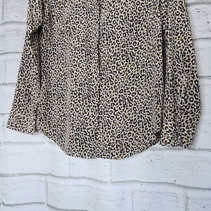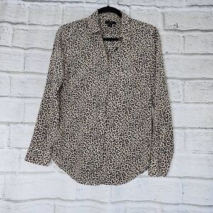 J Crew Silk Button Down Long Sleeve Cheetah Print Shirt Blouse Womens Size 8