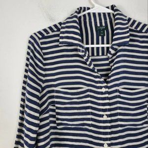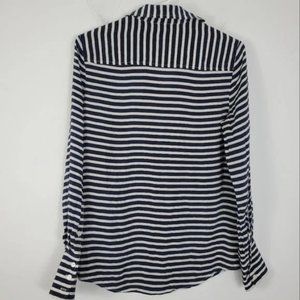 J. Crew Silk Button Up Womens Size XS Blue & White Stripe Nautical Beachy Preppy