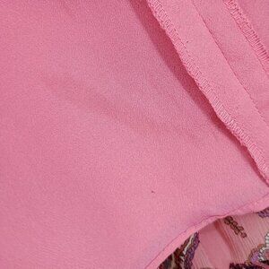 J. Crew Silk Double Pleated Paisley Skirt 12 Vivid Pink Paisley (Pink/Purple), good used condition with minimal wear and a minor flaw: discoloration at lining near hemline as shown (see last photo); not visible when worn.