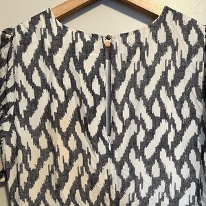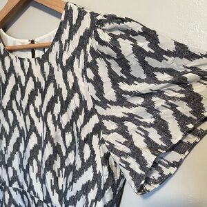 A flattering waist-defining dress with slightly fluttery sleeves, made in an ikat-covered silk fabric. This is our definition of the perfect 30-second summer outfit.