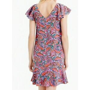 J Crew Silk Dress Size 2 Pink Paisley Ruffled Preppy Country Club Spring
