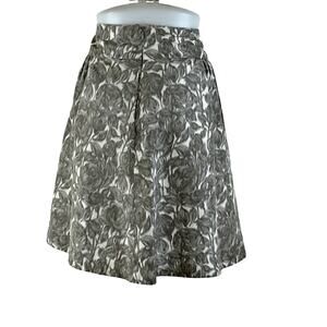 J. Crew Silk Fit & Flair Full Skirt White Gray Rose Floral Career