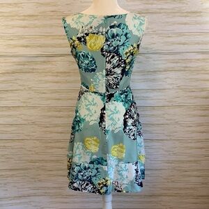 J. Crew silk party dress. 100% silk large turquoise and black floral pattern. Full back zipper. Fully lined. Small stain on the back, see photo. Womens size 0. Good used condition.