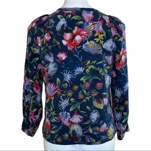 J. Crew Silk Pleated Floral peplum popover Blouse Top Navy Blue Multicol…