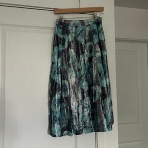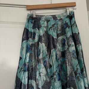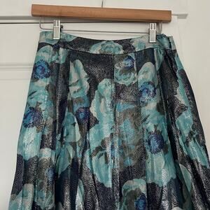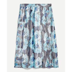 J. Crew Silk Pleated Midi Skirt Metallic Floral Jacquard Women’s 2 Blue Mermaid