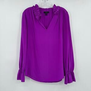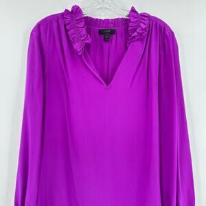 J Crew Silk Ruffle Long Sleeve V Neck Purple Blouse Siren Luxury Women Size 2T