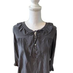 J Crew Silk Ruffled Peter Pan Collar Top Charcoal Gray 14