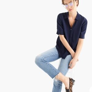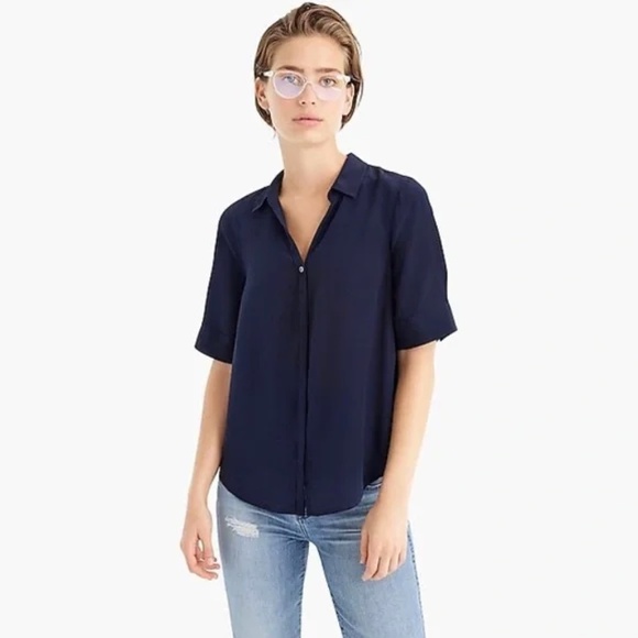 New without tags J. Crew Silk Short Sleeve shirt. Bought for a trip but never ended up wearing it. Perfect condition. Navy Blue. Size Small. Please feel free to reach out with any questions. Thanks