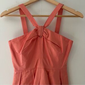 The perfect dress for a dance, party or wedding! Cute silhouette and halter neckline detail with a retro vibe. Dress is lined and also has a layer of tulle underneath. Sweet peach color. And has pockets! 🥰
