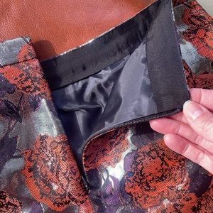 New with tags! This silver Jacquard pleated skirt features red and purple roses and is fully lined. Any flaws of consequence, I’ve tried to capture in my pictures. Please look carefully at all pictures. Otherwise, it’s perfect. Any questions, please ask!