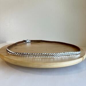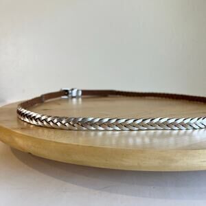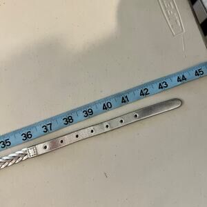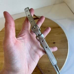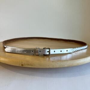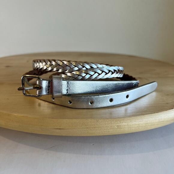 J. Crew Silver Metallic Genuine Leather Thin Skinny Woven Belt Size Large